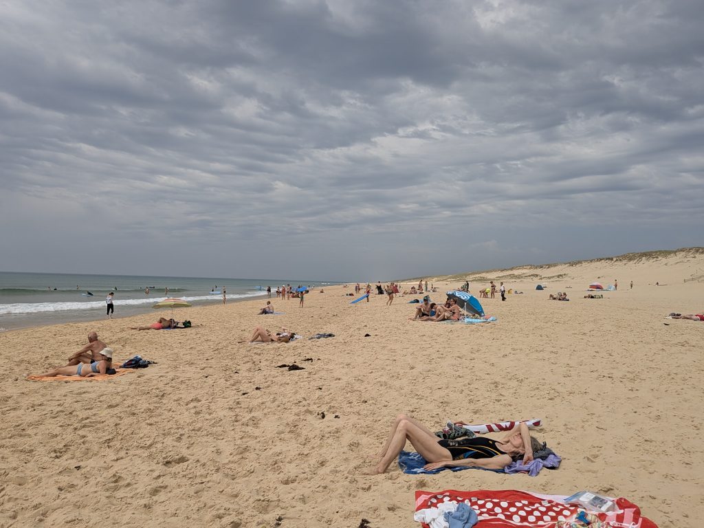 Weitergezogen sind wir für eine Nacht zur Pointe du Cap Ferret, in der Nähe der berühmten Dune du Pilat, nur um am Abend liebe Freunde zu treffen, die dort Urlaub machen. Bevor wir uns am Abend treffen, verbringen wir den Nachmittag am Strand, bis wir vor einem Gewitte vom sehr schönen Strand flüchten. Den Abend lassen wir dennoch in entspannter Atmosphäre ausklingen – bei langen Gesprächen und dem Gefühl, genau zur richtigen Zeit am richtigen Ort zu sein. Trotz des kurzen Aufenthalts bleibt dieser Zwischenstopp als besonders herzliche und stimmungsvolle Erinnerung in unserem Reisejournal.