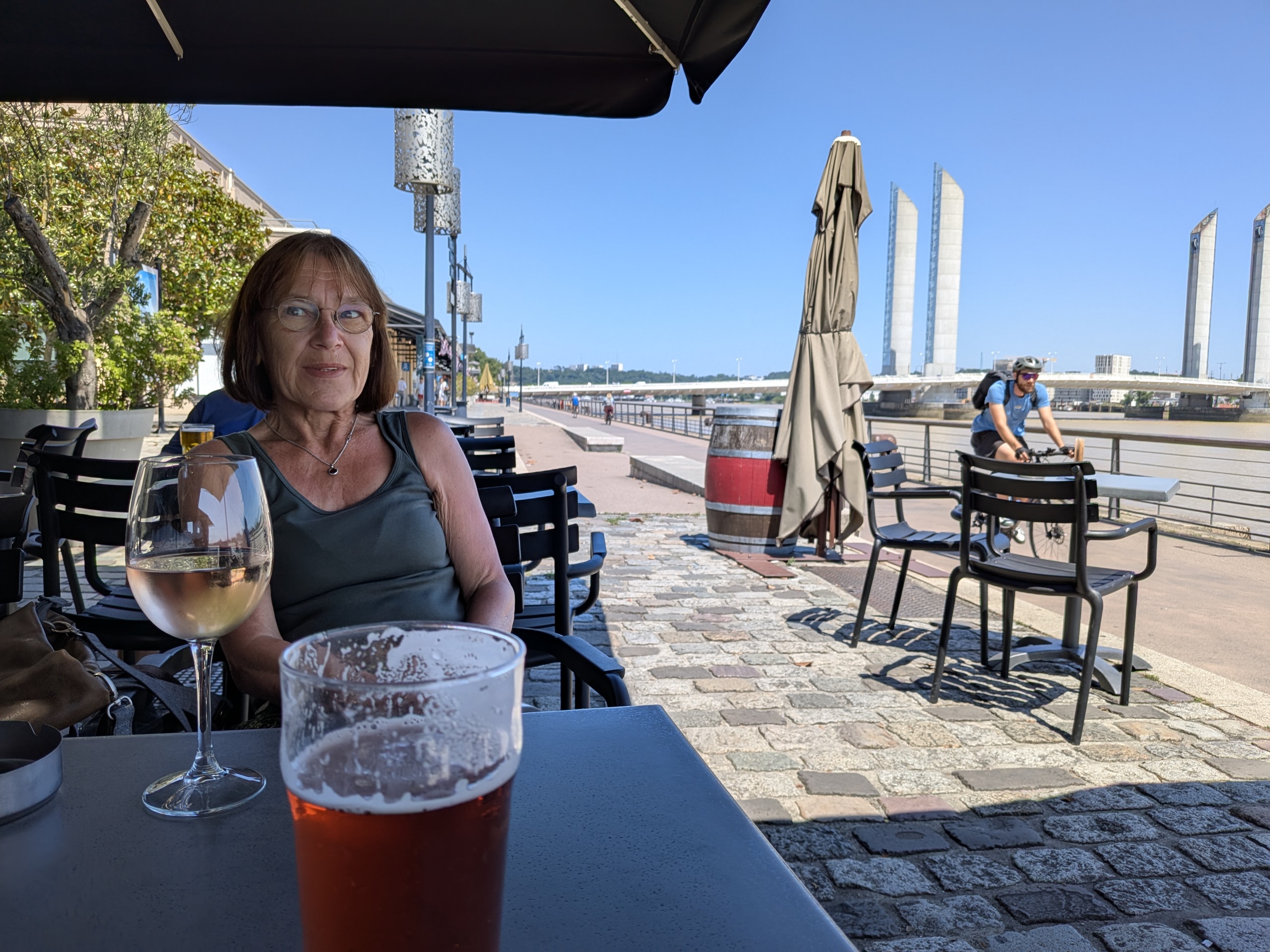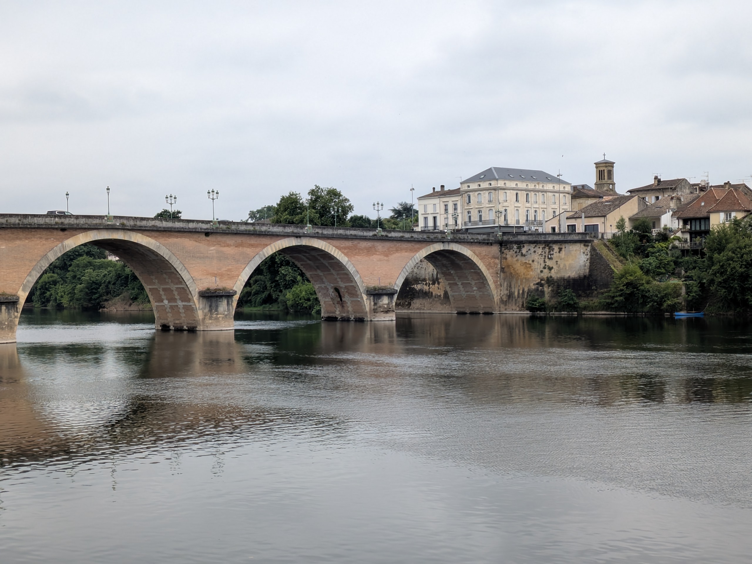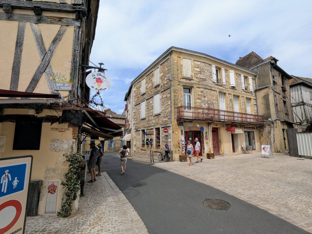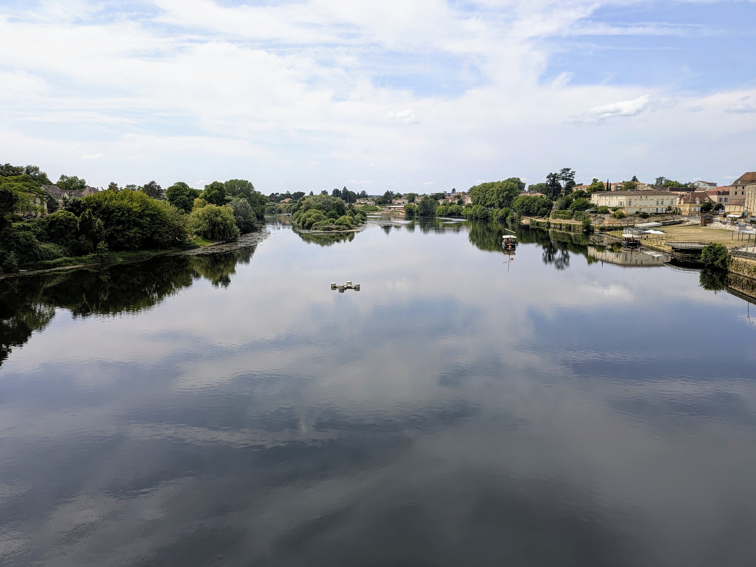 Da unser nächstes Ziel Bordeaux aufgrund einer großen Musikveranstaltung vollständig ausgebucht ist, fahren wir stattdessen nach Bergerac, in der französischen Region Nouvelle-Aquitaine, idyllisch gelegen an der Dordogne. Dort nutzen wir die Gelegenheit, die charmante Altstadt zu erkunden, die die Stadt umgebenden Weinberge und die entspannte Atmosphäre der Region zu genießen. Wir campen auf dem Camping Night&Day La Pelouse, von dem aus man zu Fuß das Zentrum in ca. 20 Minuten erreicht.