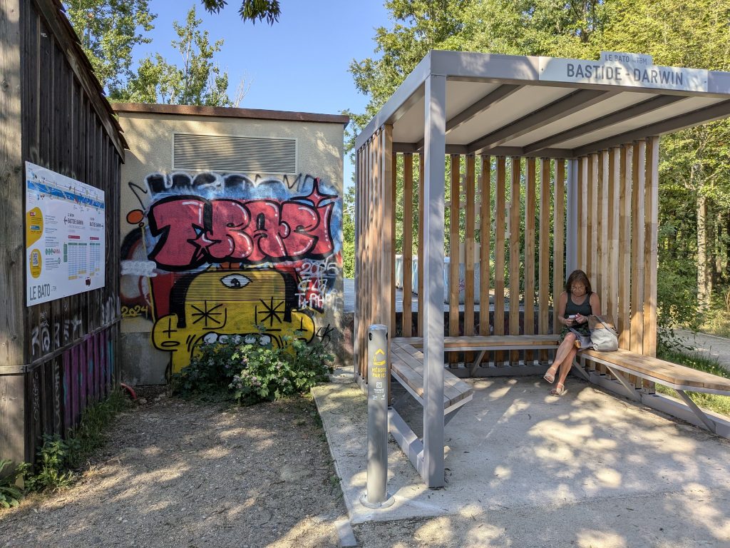 Mit Bus und Straßenbahn braucht man etwa 50 Minuten bis ins Stadtzentrum, mit dem Auto sind es rund 20 Minutenund auch mit dem Fahrrad ist Bordeaux in ungefähr 30 Minuten gut erreichbar. Wir haben uns für den Bus entschieden und direkt 24-Stunden-Tickets gekauft – unkompliziert und entspannt.