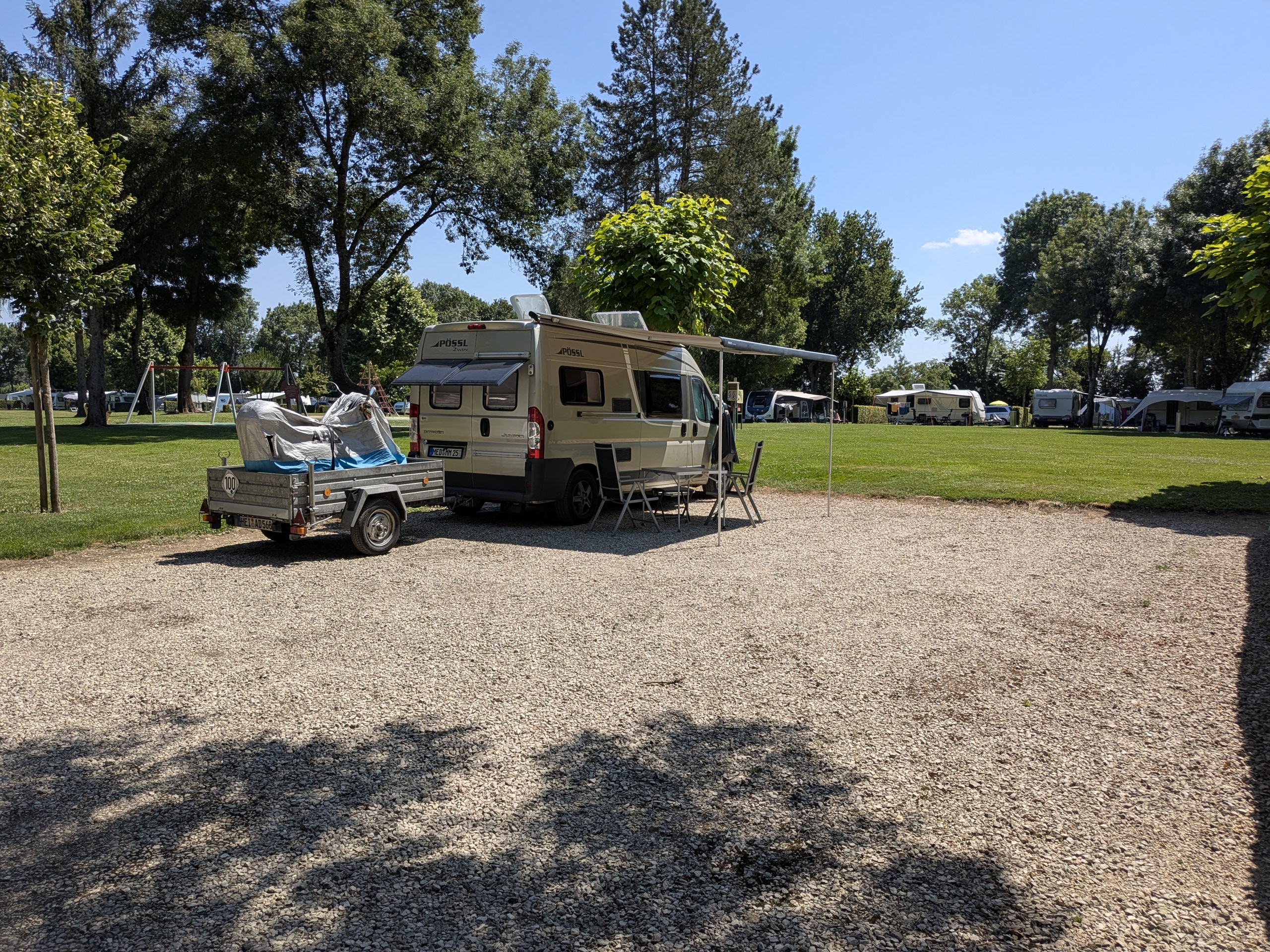 Da wir uns sehr kurzfristig für diesen Halt entschieden haben, ist die Auswahl an freien Stellplätzen begrenzt und nur im oberen Preissegment finden wir noch einen Platz. Die schöne Lage, die großzügige Anlage und die vielfältigen Angebote überzeugen jedoch schnell. Wir genießen die Zeit am Pool und nutzen den Stopp zur Erholung – für uns ein sehr angenehmer Ort für eine Zwischenübernachtung.